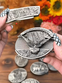 This buckle has an awesome shiny finish. It is in perfect wearable condition, it has a knife that is hidden inside the buckle in a pullout compartment. It fits with a metal bar and pin (for a snap on belt). Quality guaranteed, picture does not do this buckle justice! Would make a stand out addition to your belt.